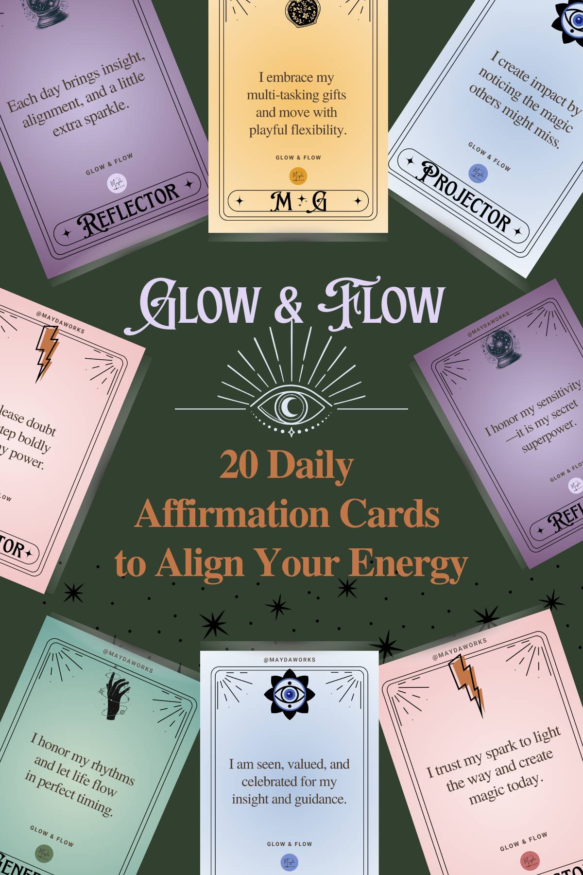 This printable affirmation deck is designed to align with all Human Design energy types — Manifestor, Generator, Manifesting Generator, Projector, and Reflector — so you can embody your strengths and show up with clarity and confidence every single day.
